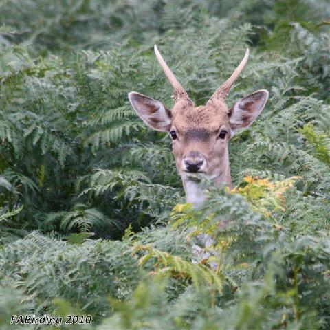 A Fallow Deer keeping a beady eye open for intruders whilst trying to remain inconspicuous amongst the lush fern foliage. I will post some more images of my recent encounters with a number of Fallow Deer on my Early Birder blog in the next few days. FAB.